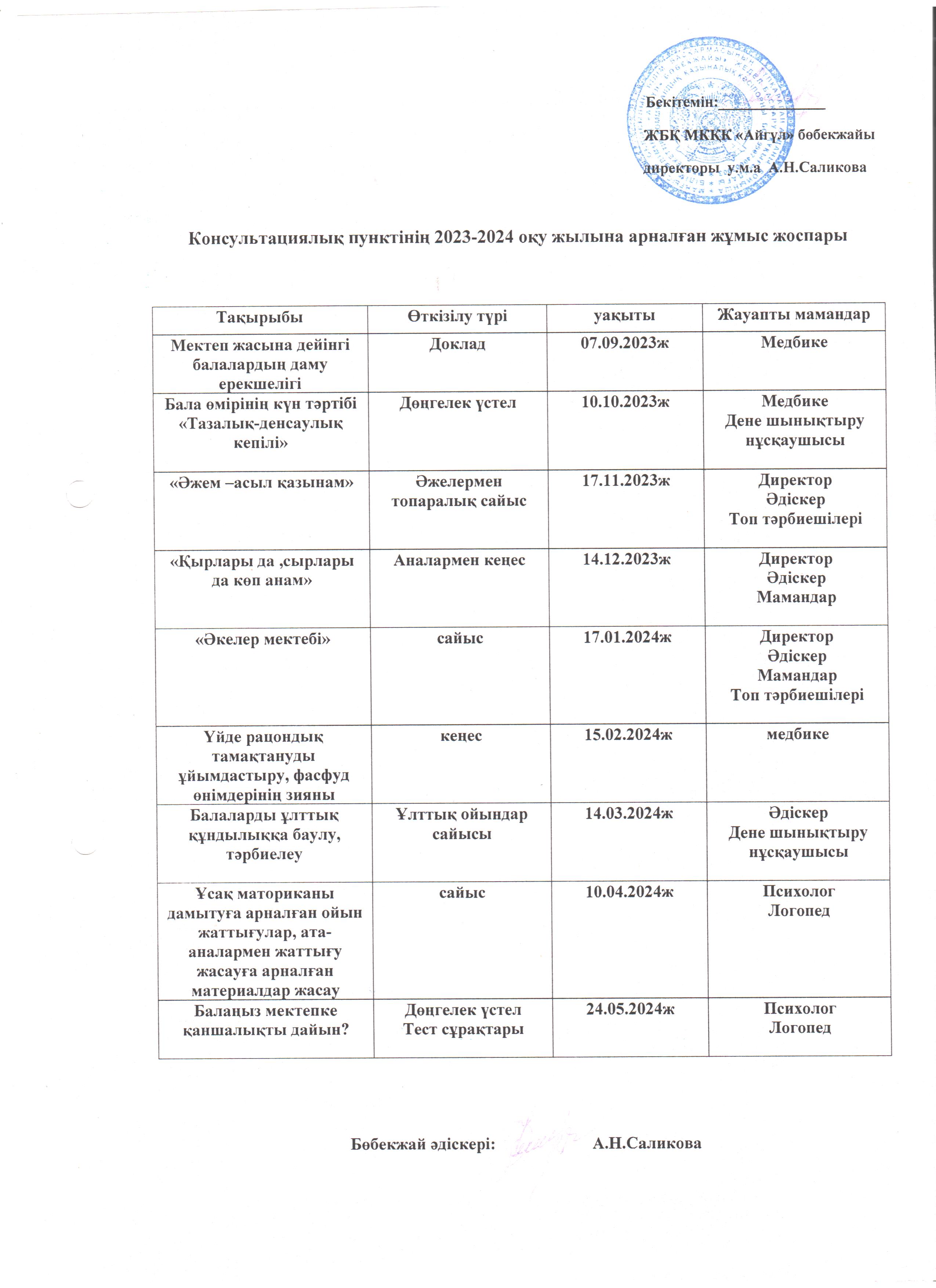 Ұйымдастылырған оқу қызметінің кестелері, күн тәртібі