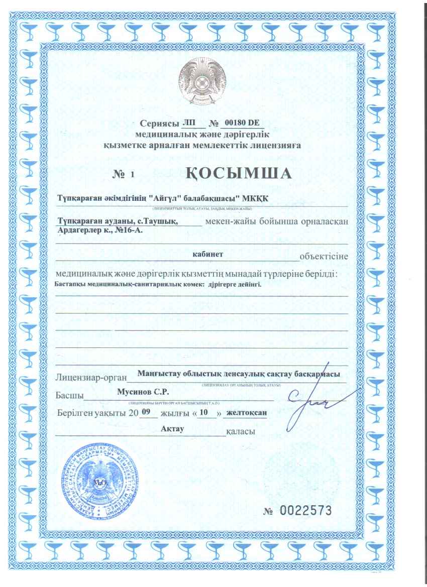 | № | 1.1. Дәрігер кабинет лицензиясы | Жүктеу |