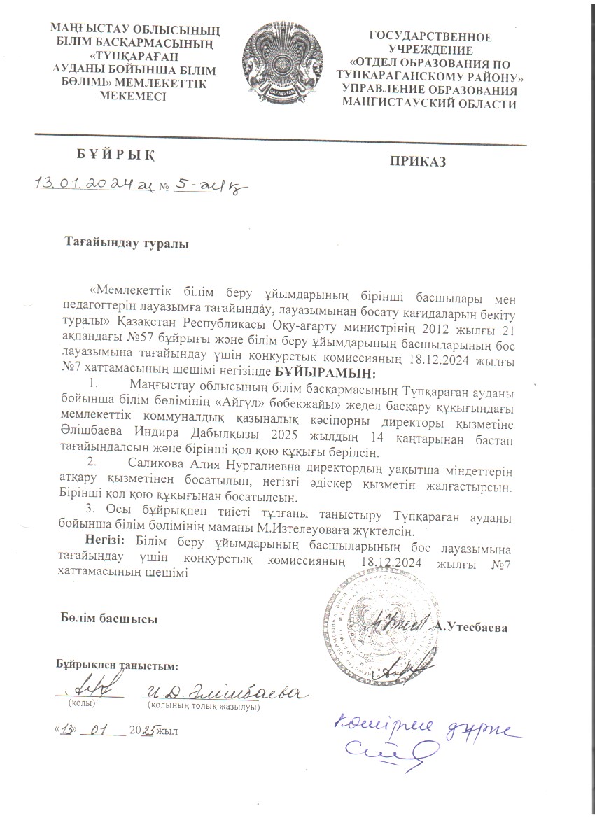 | 2 | 1.5.Лауазымға тағайындау туралы бұйрық |